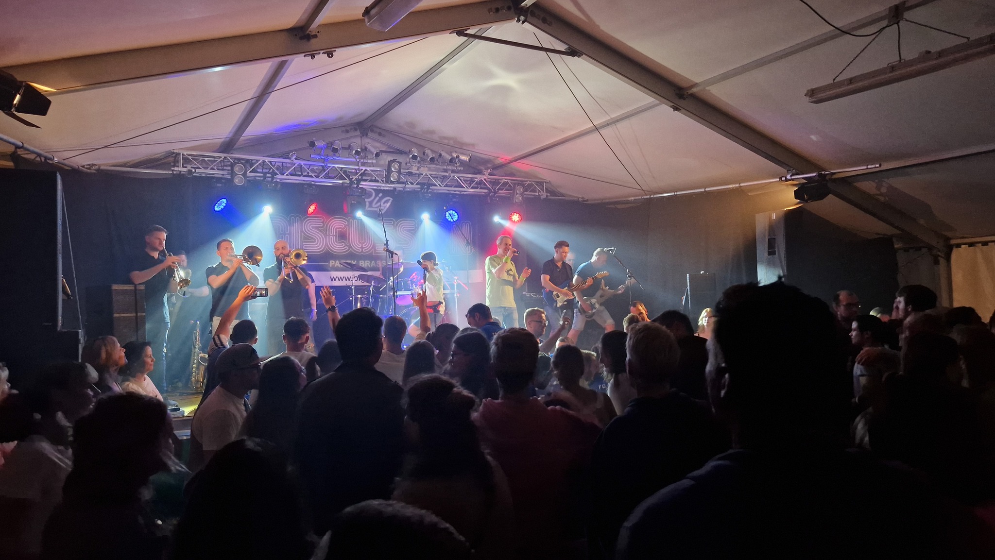 Mit unserer einzigartigen Kombi aus Rockband und 6!-köpfigem Bläsersatz zaubern wir – 12 Vollblutmusiker – richtig fetten Sound auf die Bühne!